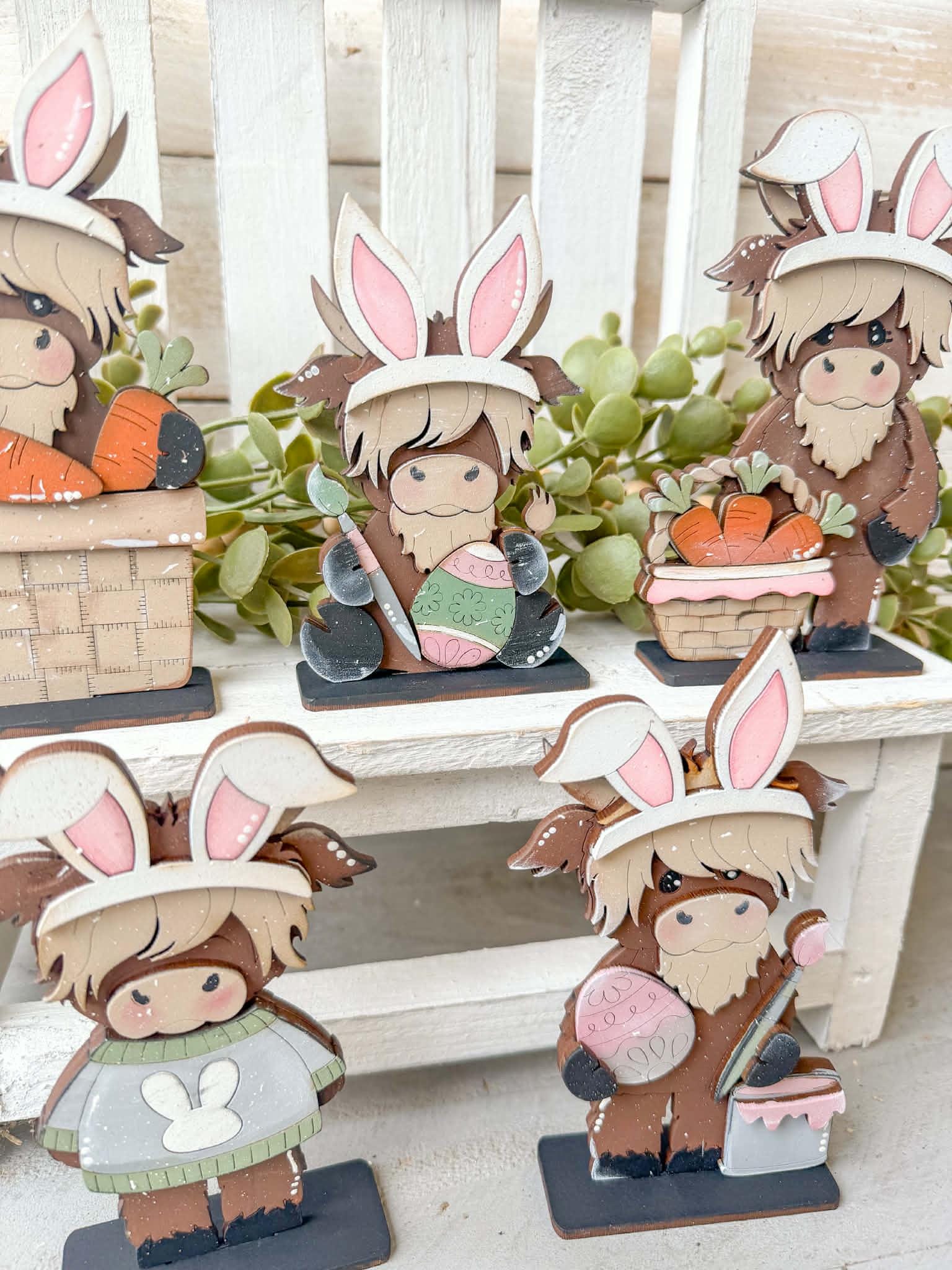 Highland Easter Bunny Standing Sign File SVG, Glowforge, Cow, Bunny, Egg, Basket, Carrots, Tiered Tray LuckyHeartDesignsCo