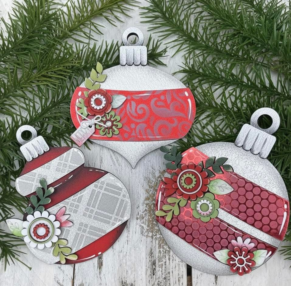 Chunky Floral Christmas Ornaments File SVG, Flower, Holiday Decor Glowforge, LuckyHeartDesignsCo