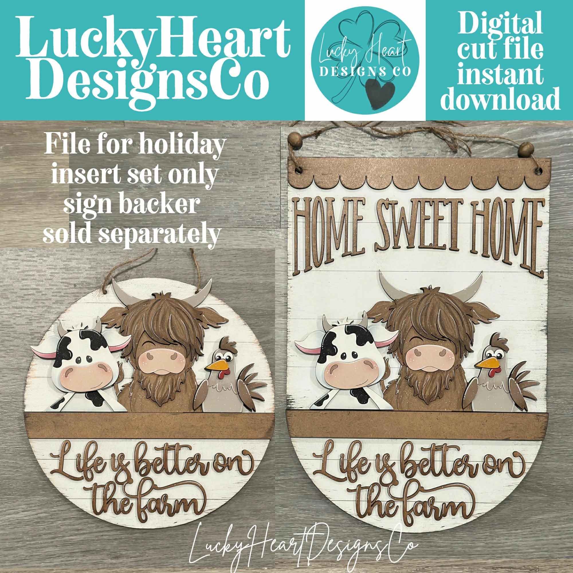 Cow Farm Holiday Door Sign Interchangeable File, SVG Highland, Dairy, Chicken, Home, Seasonal, Home, Welcome, glowforge