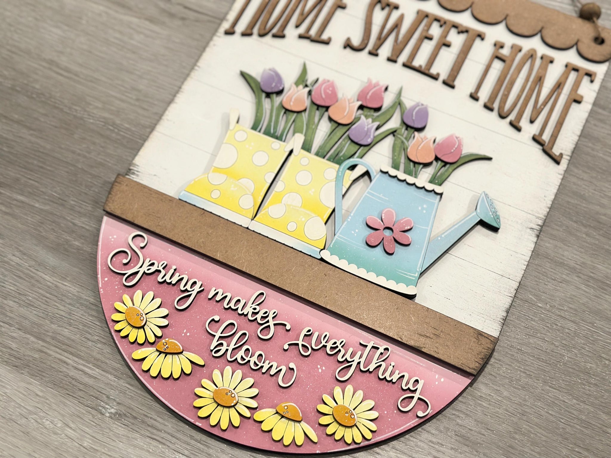 Spring Flowers Holiday Door Sign Interchangeable File, SVG Rain Boots, Watering Can, Floral, Tulip Daisy Seasonal, Home, Welcome, glowforge