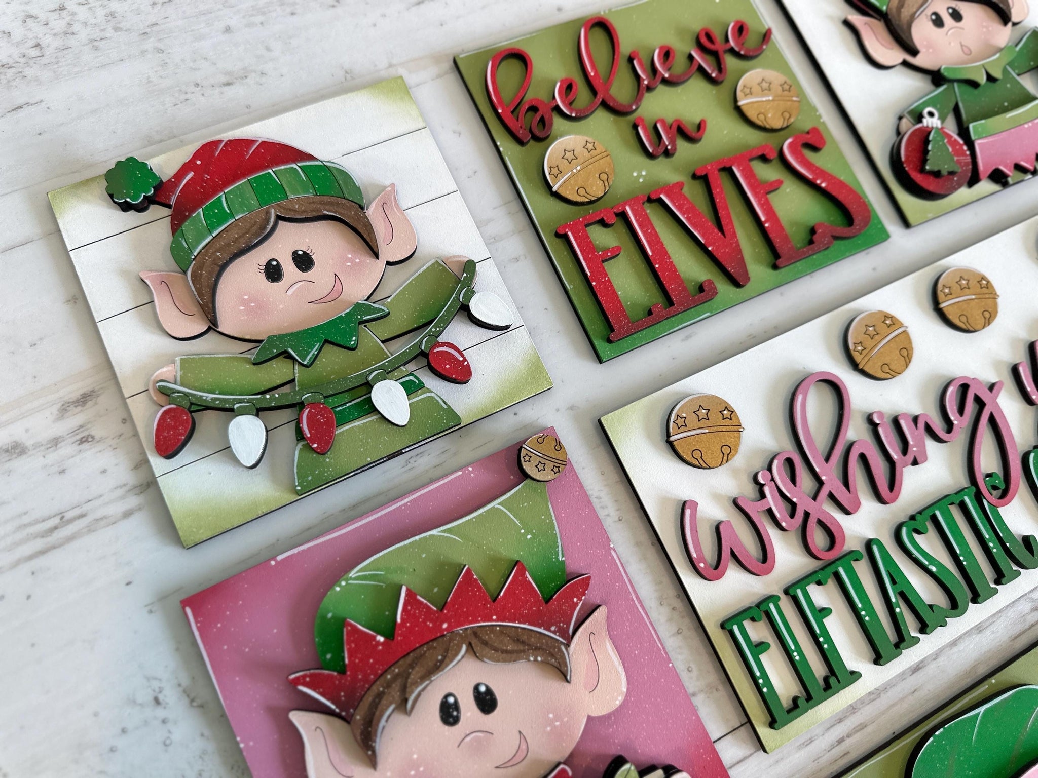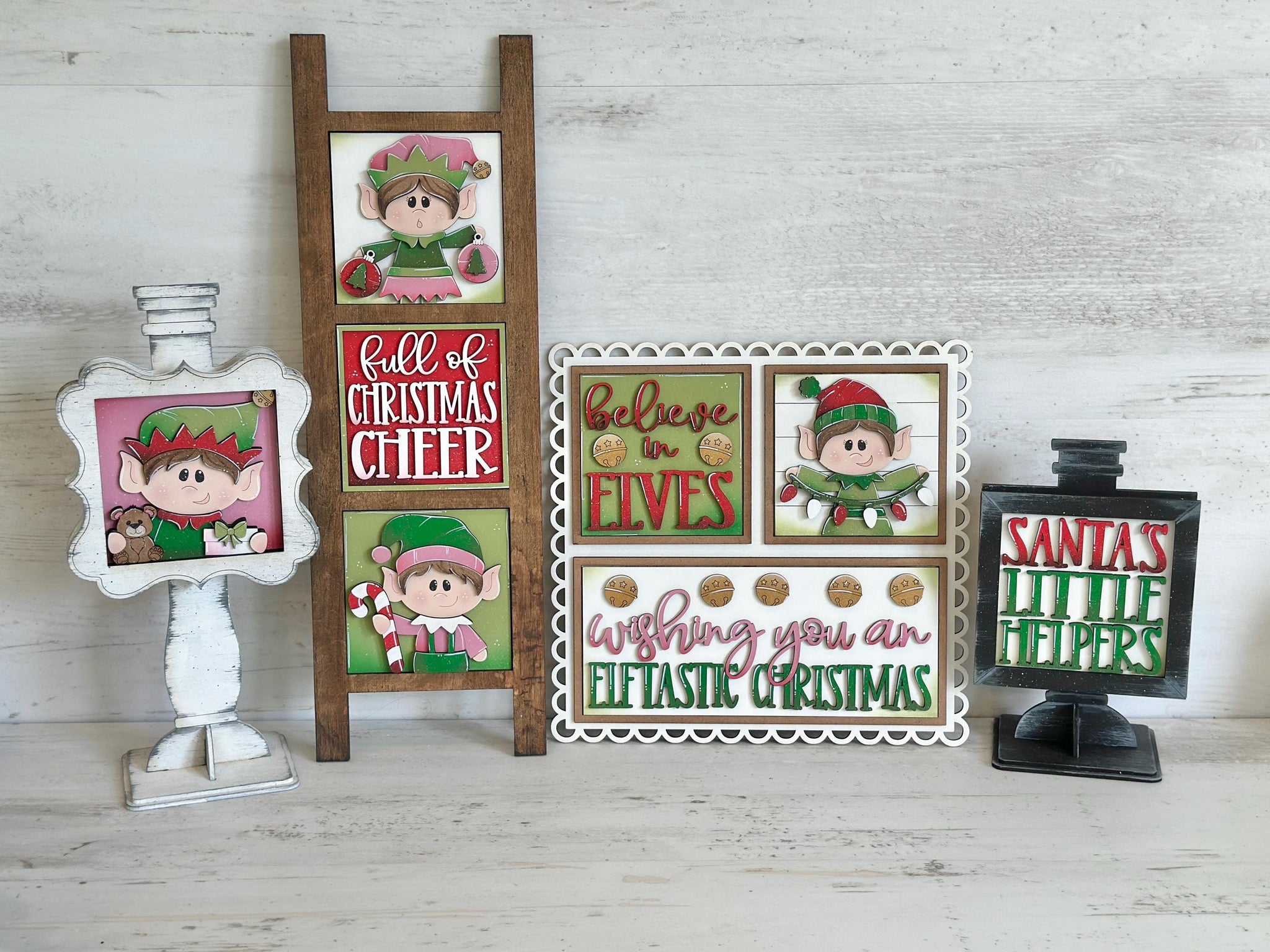 Elves Cute Christmas Interchangeable Leaning Sign File SVG, Glowforge Santa, Elf, Presents, Reindeer, Tiered Tray Signs, LuckyHeartDesignsCo