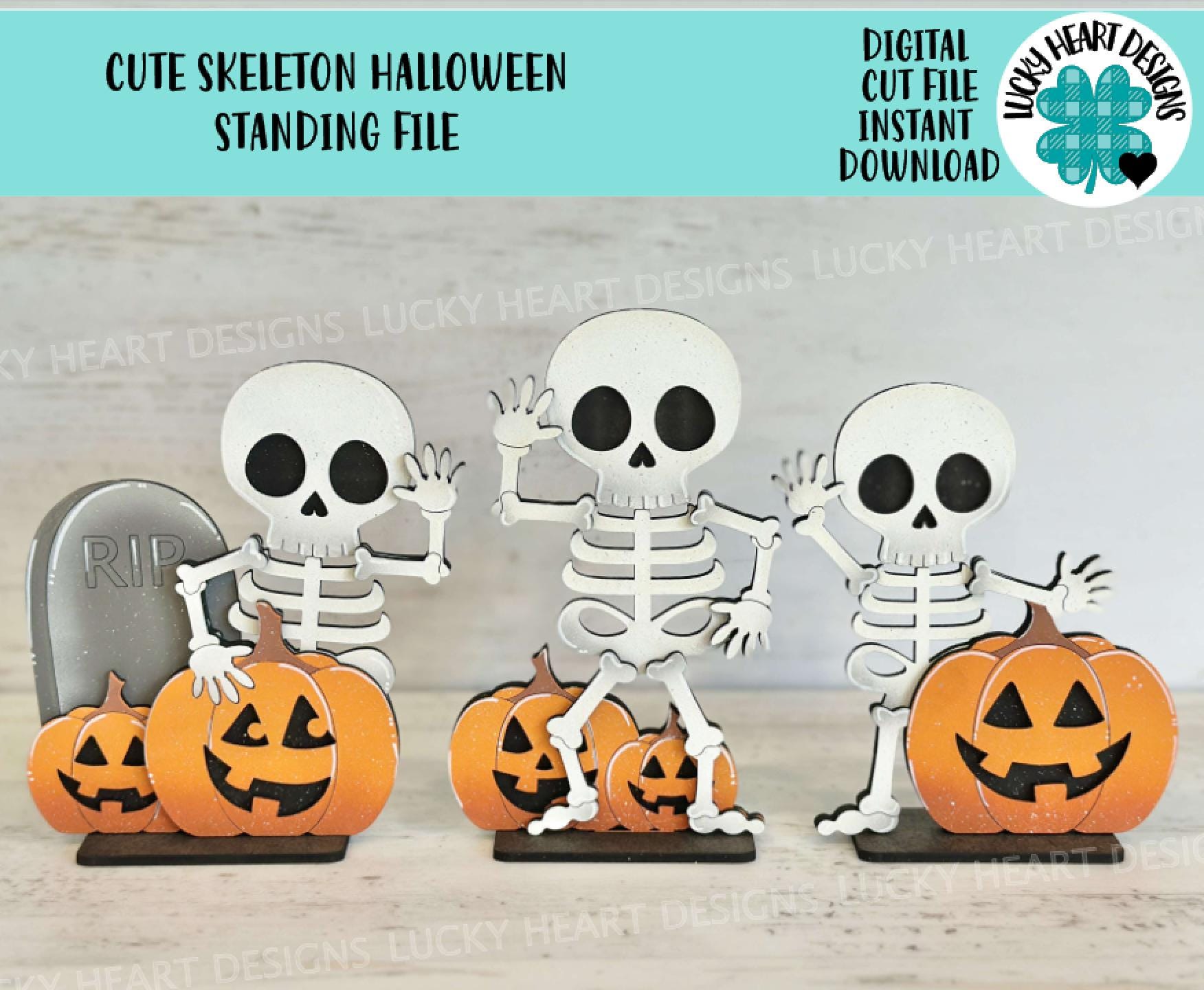 Cute Skeleton Halloween Standing File SVG, Witch, Jack-o-lantern, Boo, Tombstone, Trick Or Treat Tiered Tray Glowforge, LuckyHeartDesignsCo