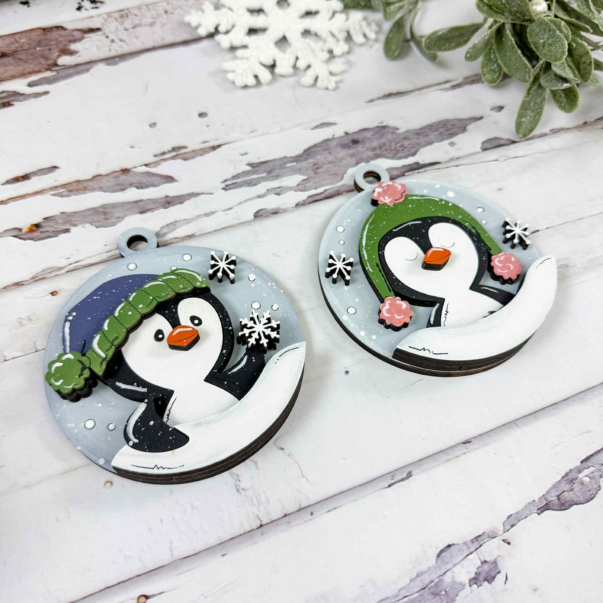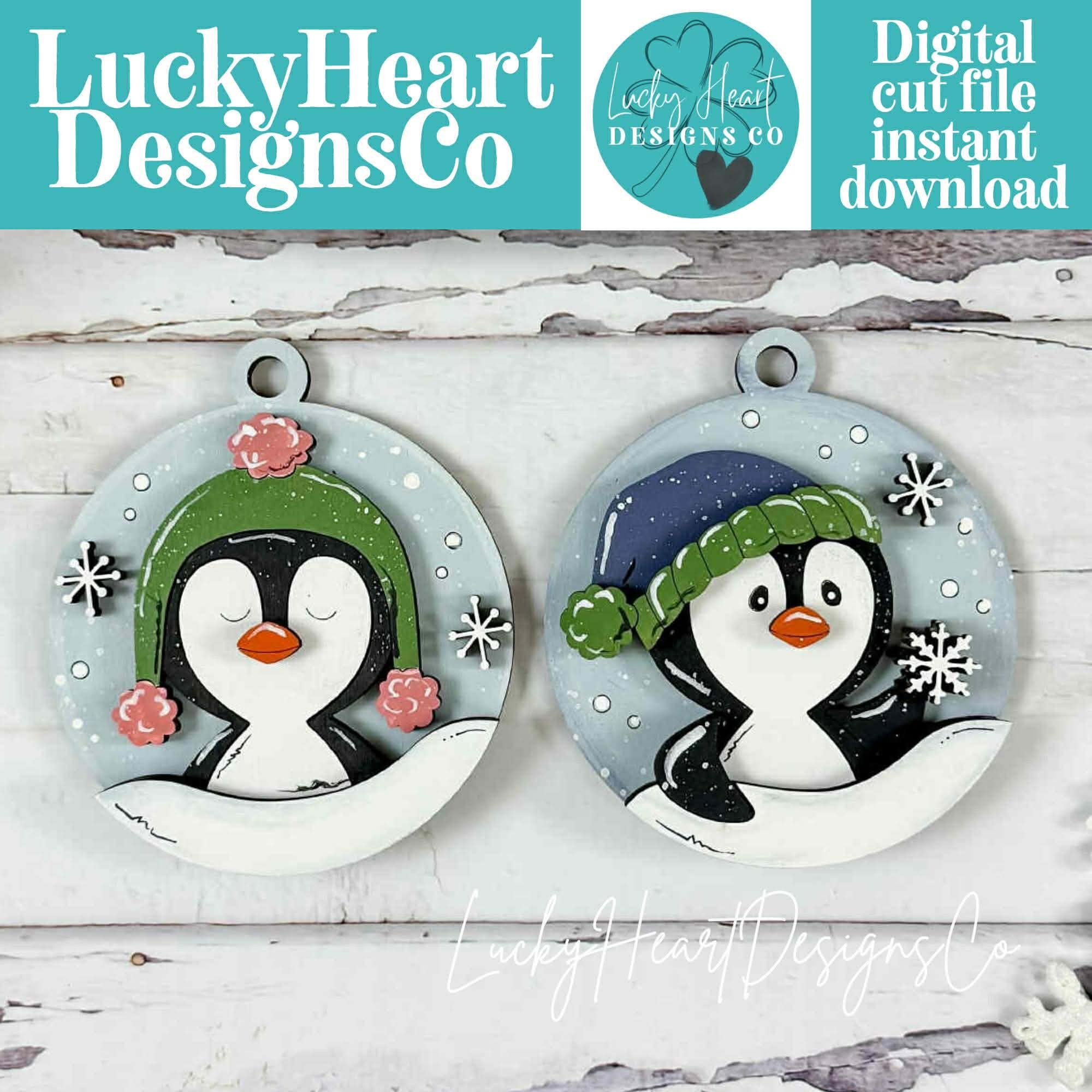 Penguin Winter Christmas Ornament File SVG, Holiday, craft, snowflake, Snow, Glowforge, LuckyHeartDesignsCo