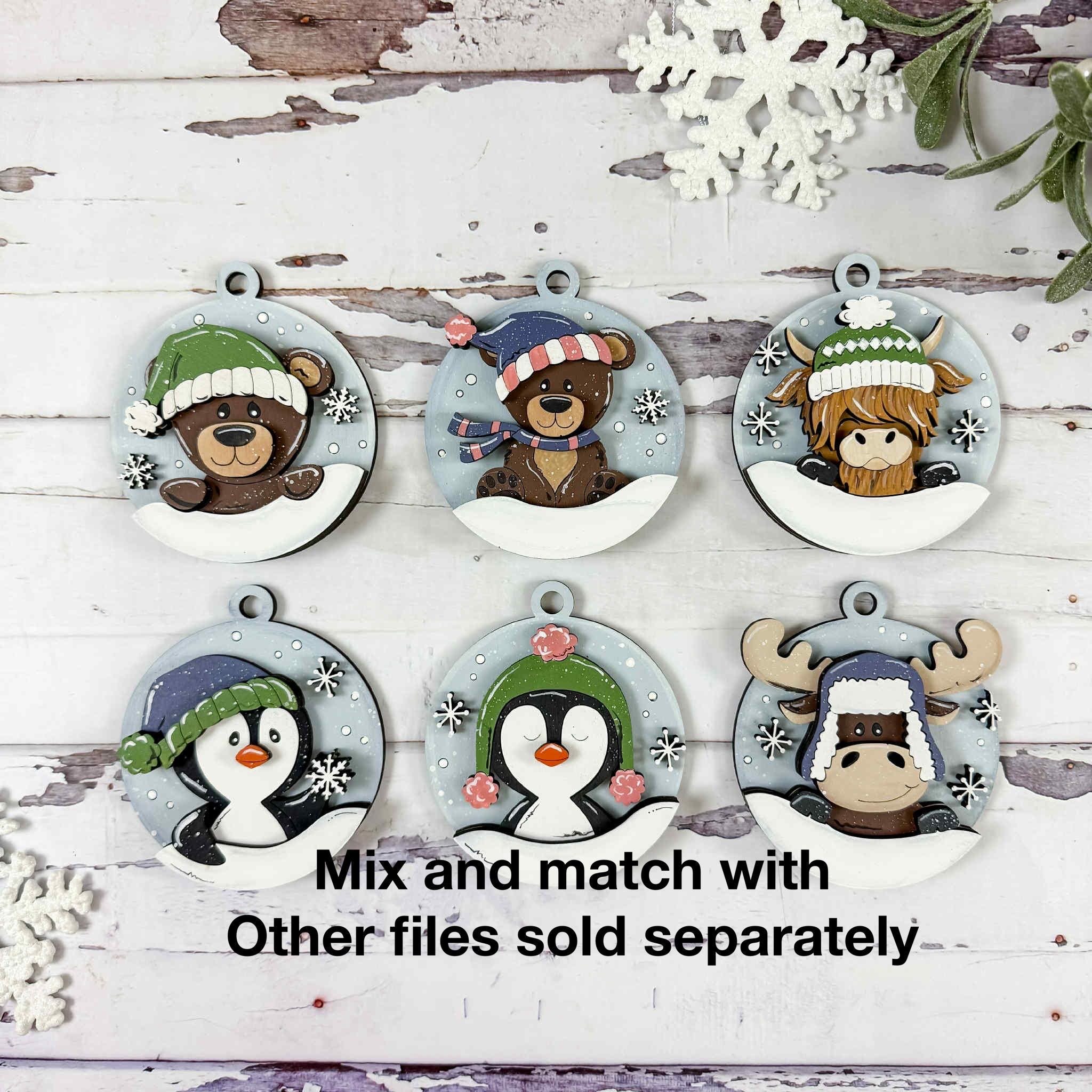 • Load image into Gallery viewer, Penguin Winter Christmas Ornament File SVG, Holiday, craft, snowflake, Snow, Glowforge, LuckyHeartDesignsCo