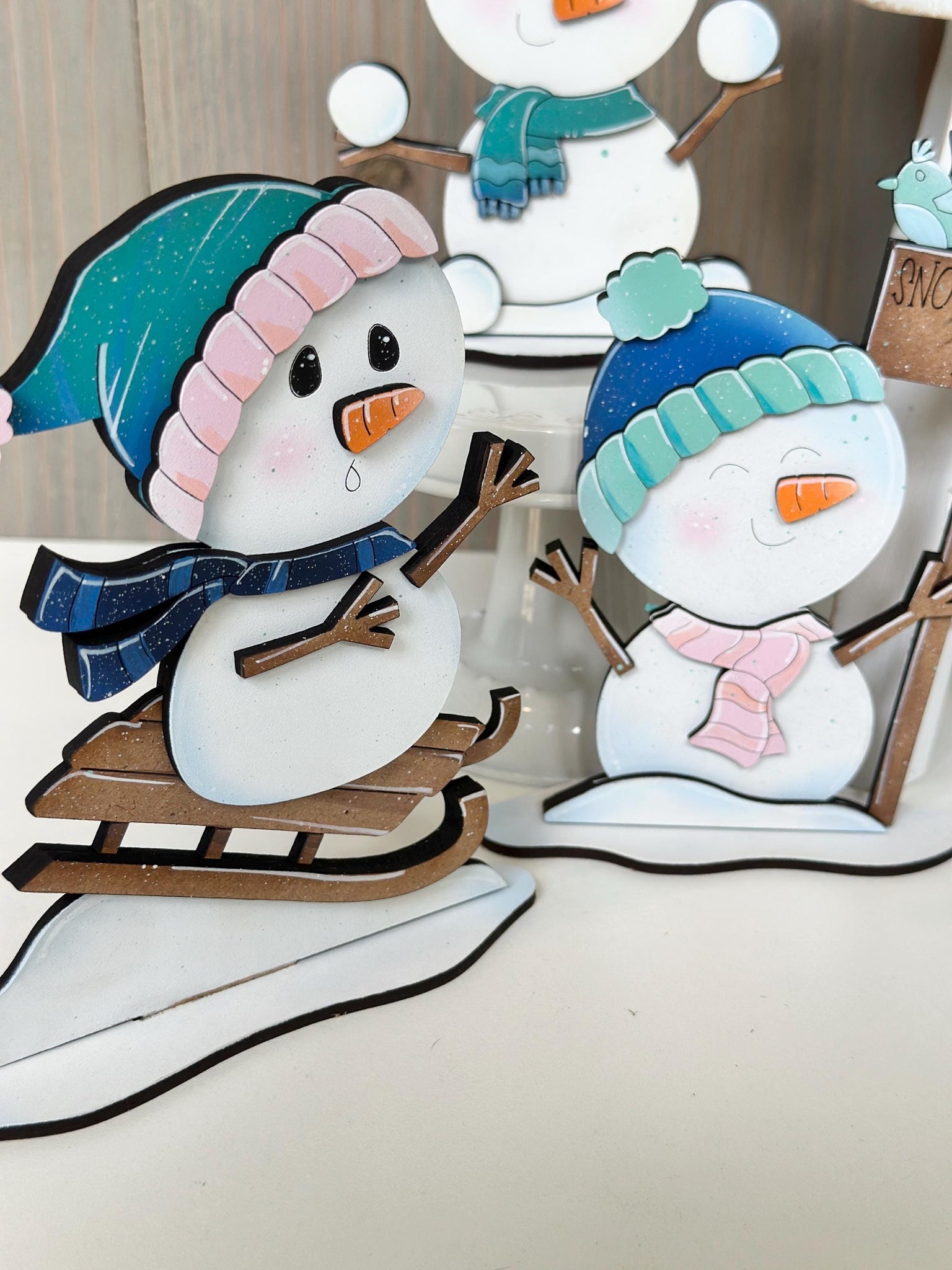 Snowman Cute Winter Standing File SVG, Glowforge, Sleigh, Hot Cocoa, Chocolate Snowmen, Winter Tiered Tray LuckyHeartDesignsCo