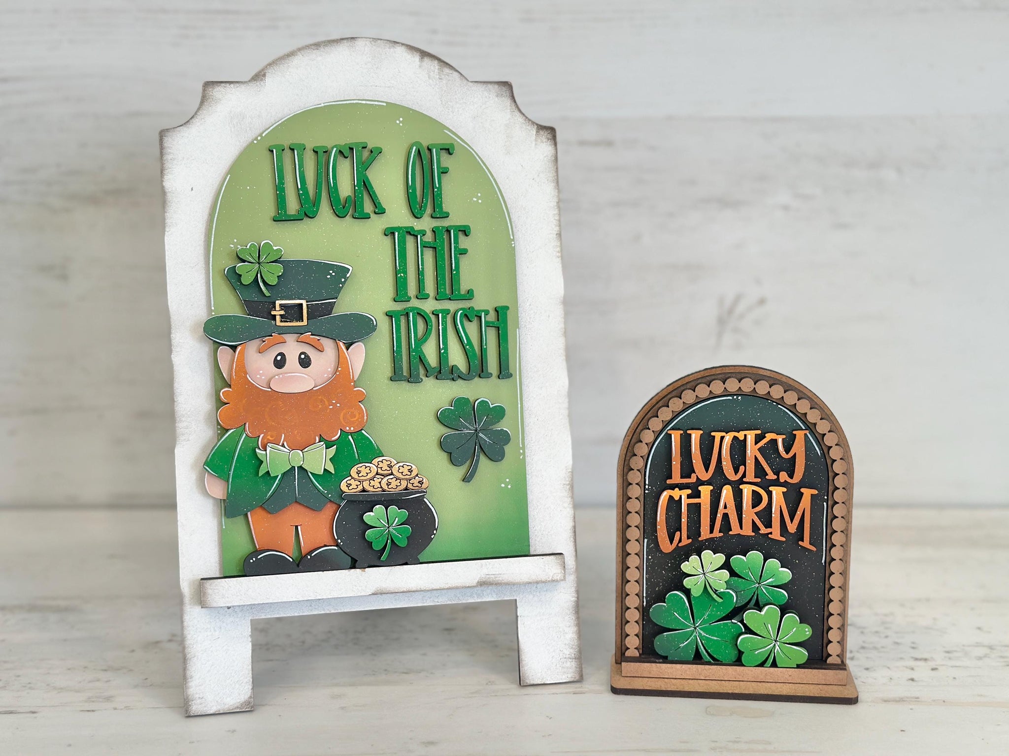 Leprechaun Tall Arch Sign Interchangeable File SVG, TINY, INSERT only Clover, Lucky Gold Glowforge, Holiday, Tiered Tray LuckyHeartDesignsCo