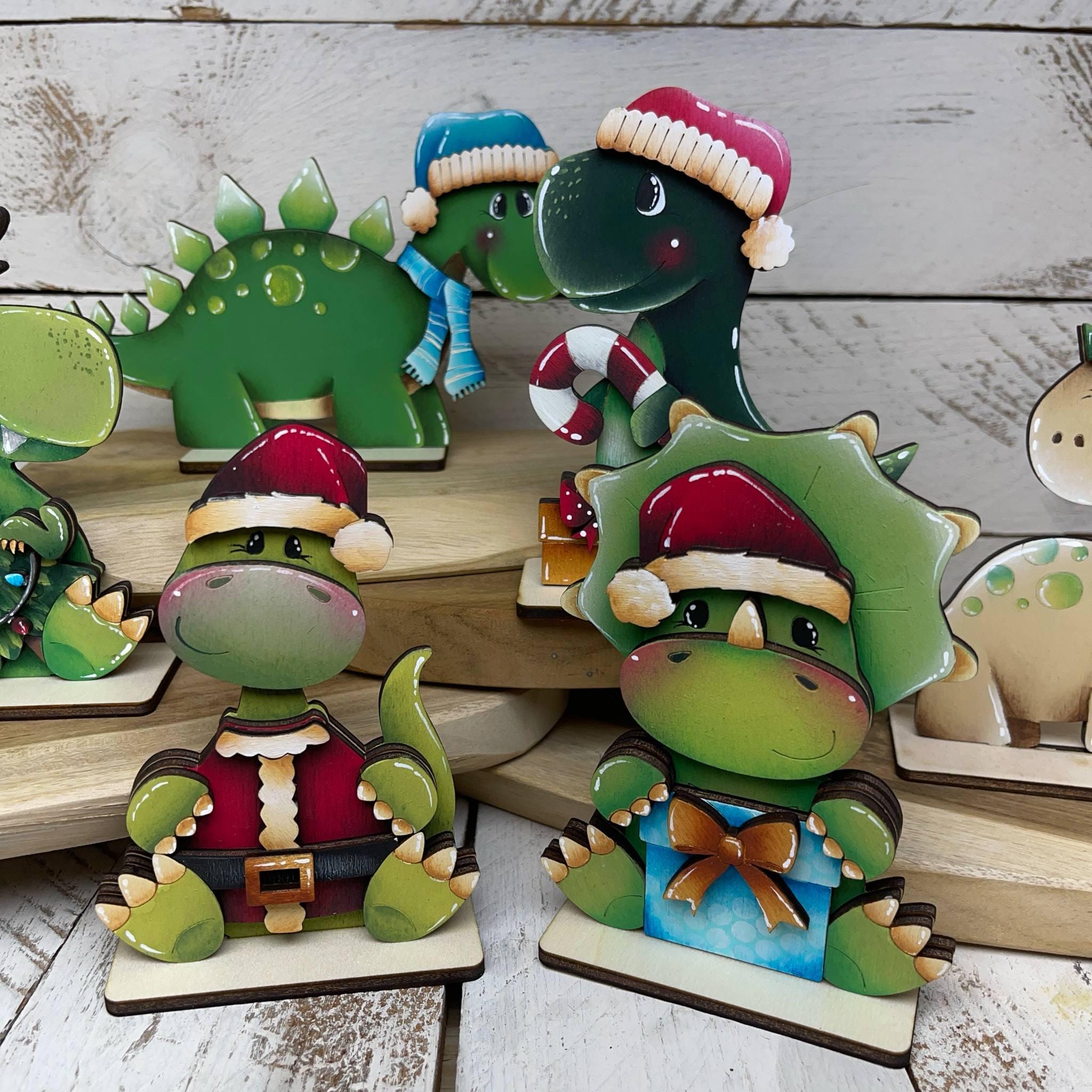 Christmas Dinosaur Standing File SVG, Glowforge Candy Cane, T-Rex, Triceratops, Reindeer, Rudolph, Santa, Tiered Tray, LuckyHeartDesignsCo