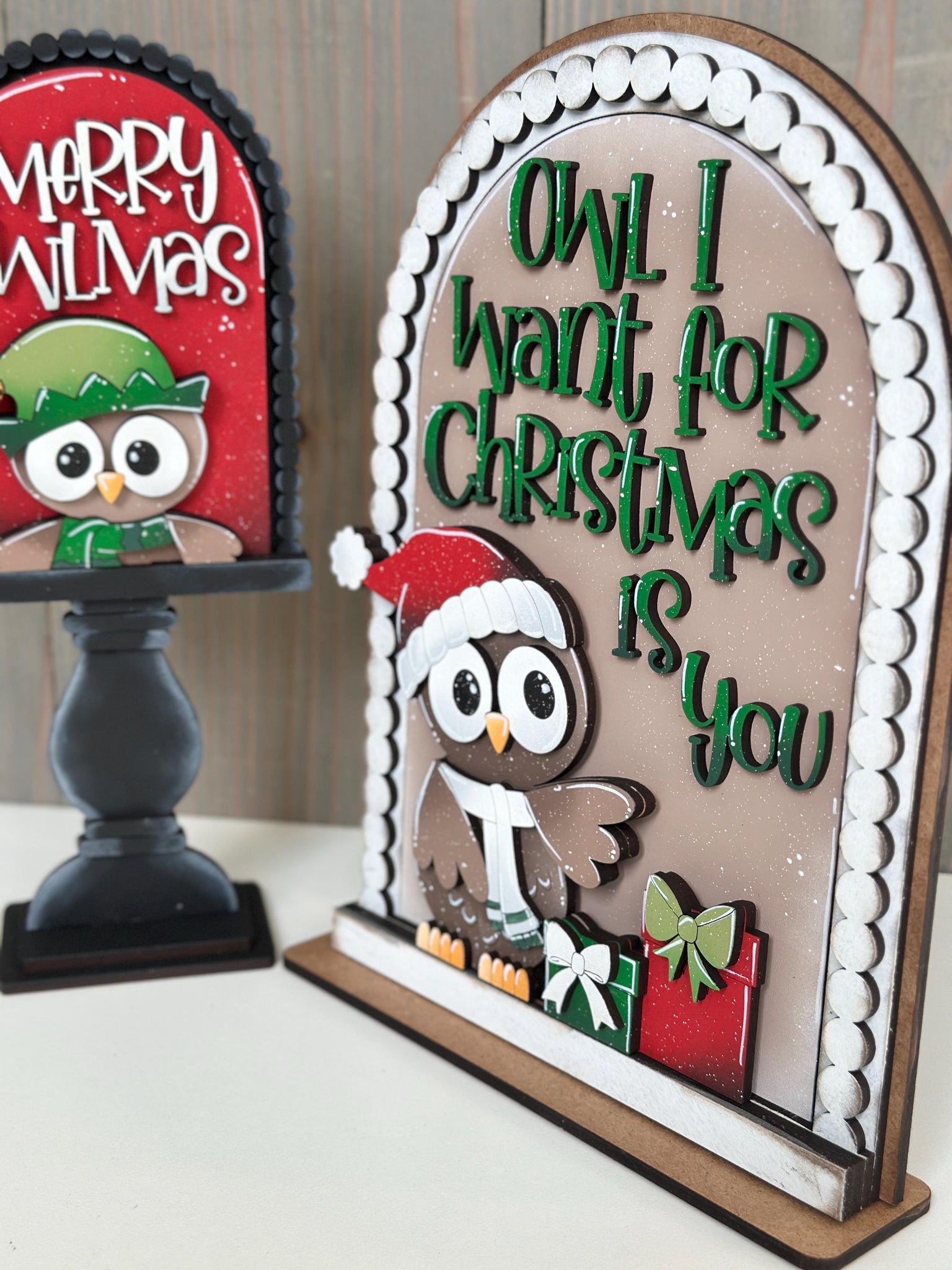 • Load image into Gallery viewer, Owl Cute Christmas Tall Arch Sign Interchangeable File SVG, TINY, INSERT only, Santa, Glowforge, Holiday, Tiered Tray LuckyHeartDesignsCo