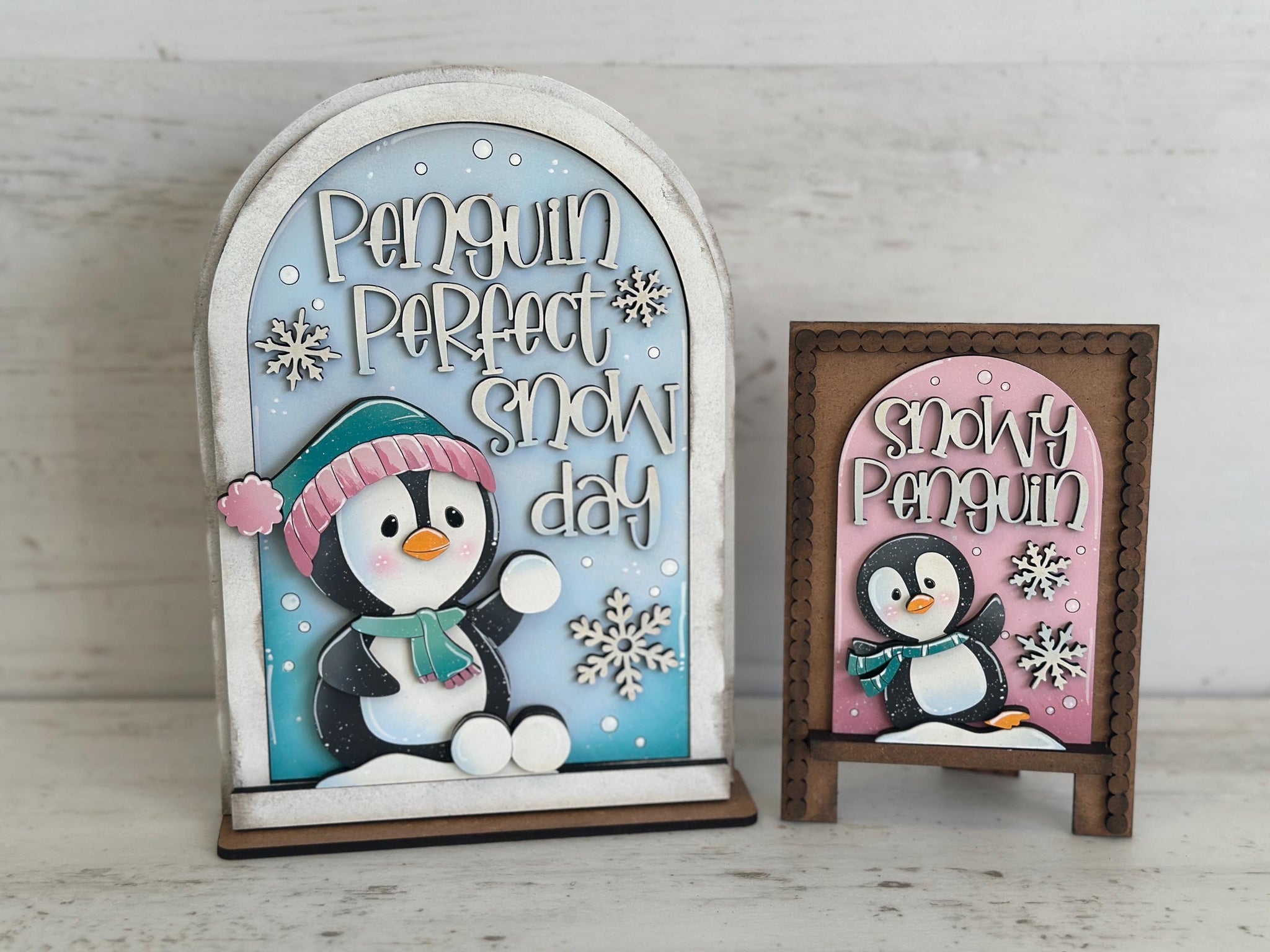• Load image into Gallery viewer, Penguin Cute Winter Tall Arch Sign Interchangeable File SVG, TINY, INSERT only Snowmen Glowforge, Holiday, Tiered Tray LuckyHeartDesignsCo